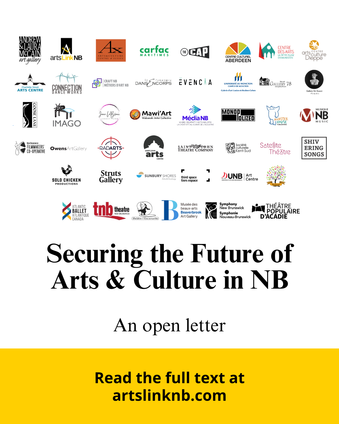 ArtsLink NB, in consultation with arts organizations across the province, representing a broad and diverse perspective of the arts and culture community, has written an open letter about the future of arts and culture in NB. The letter outlines key recommendations for supporting New Brunswick’s arts organizations and reflects shared priorities across sector.