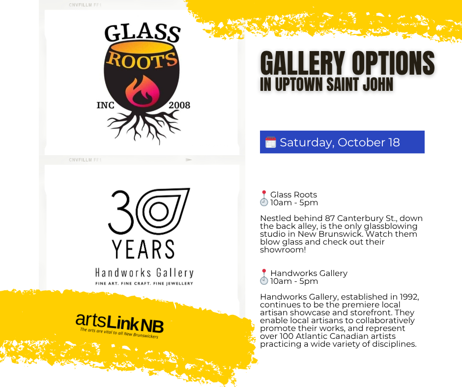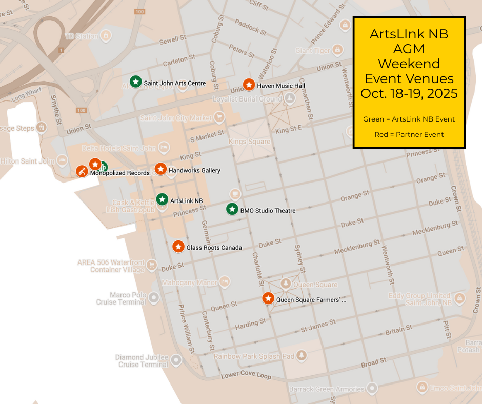 | 📍 Saint John Arts Centre | 📍 BMO Studio Theatre | 📍 ArtsLink NB Office |
