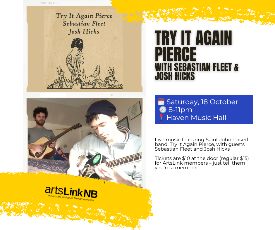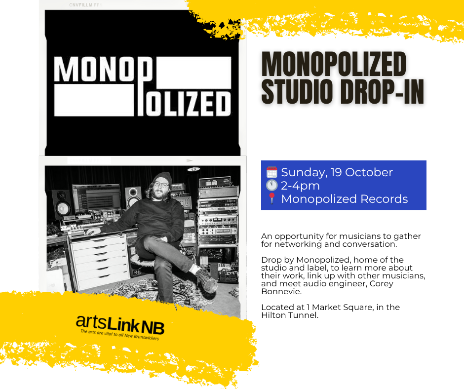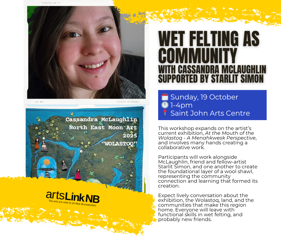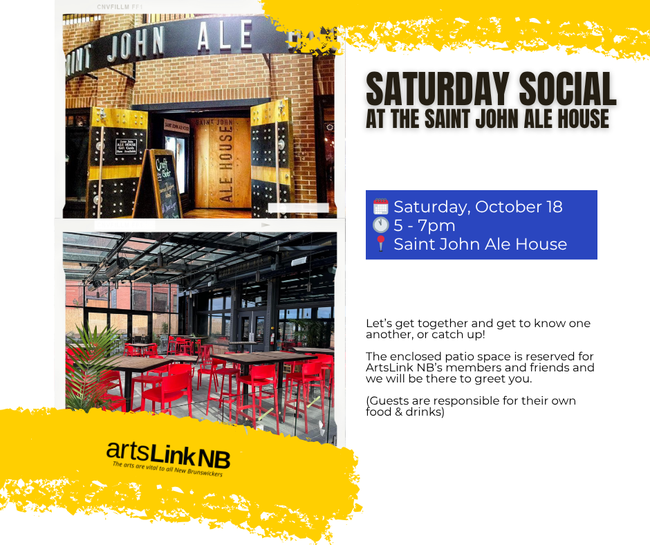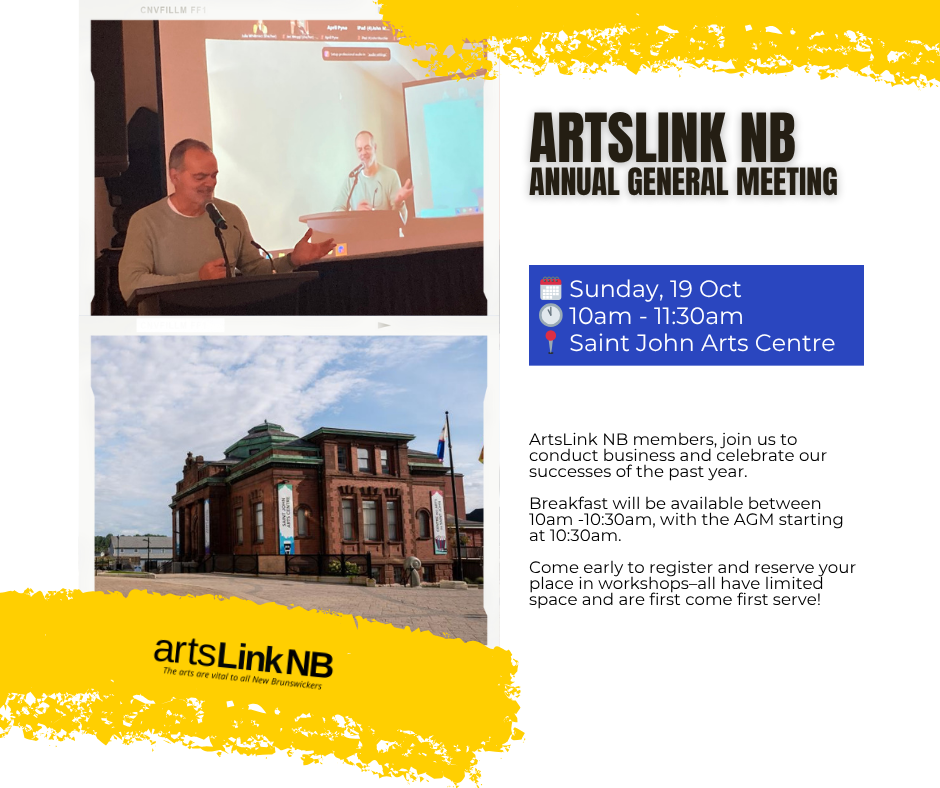 Don’t miss out on this exciting programming! Free events and workshops! Open to the public, but ArtsLink NB members get the first spots in limited capacity events.