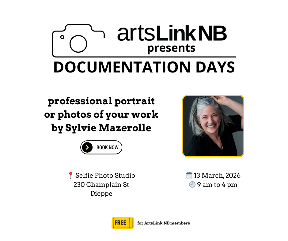 Book a half-hour slot and get your work photographed professionally with photographer Sylvie Mazerolle at our upcoming Documentation Day in Dieppe.