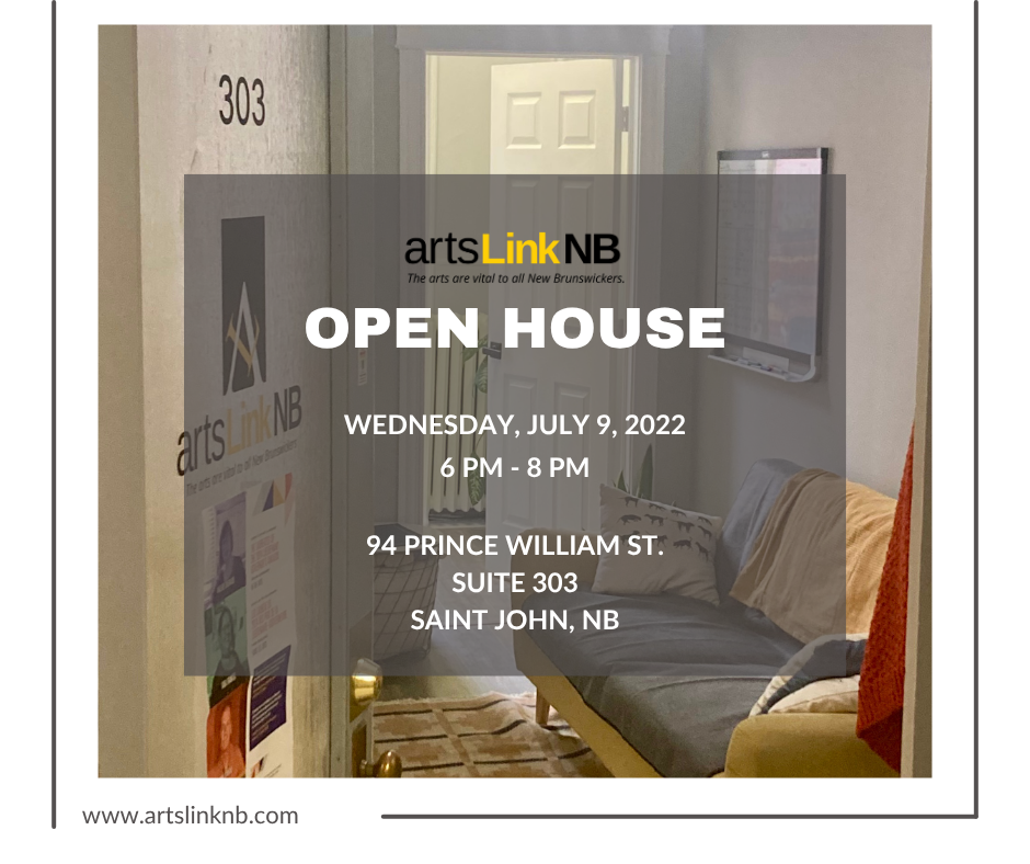 Mark your calendars! On Wednesday, July 9, ArtsLink NB will host an open house in our Saint John office from 6-8pm.