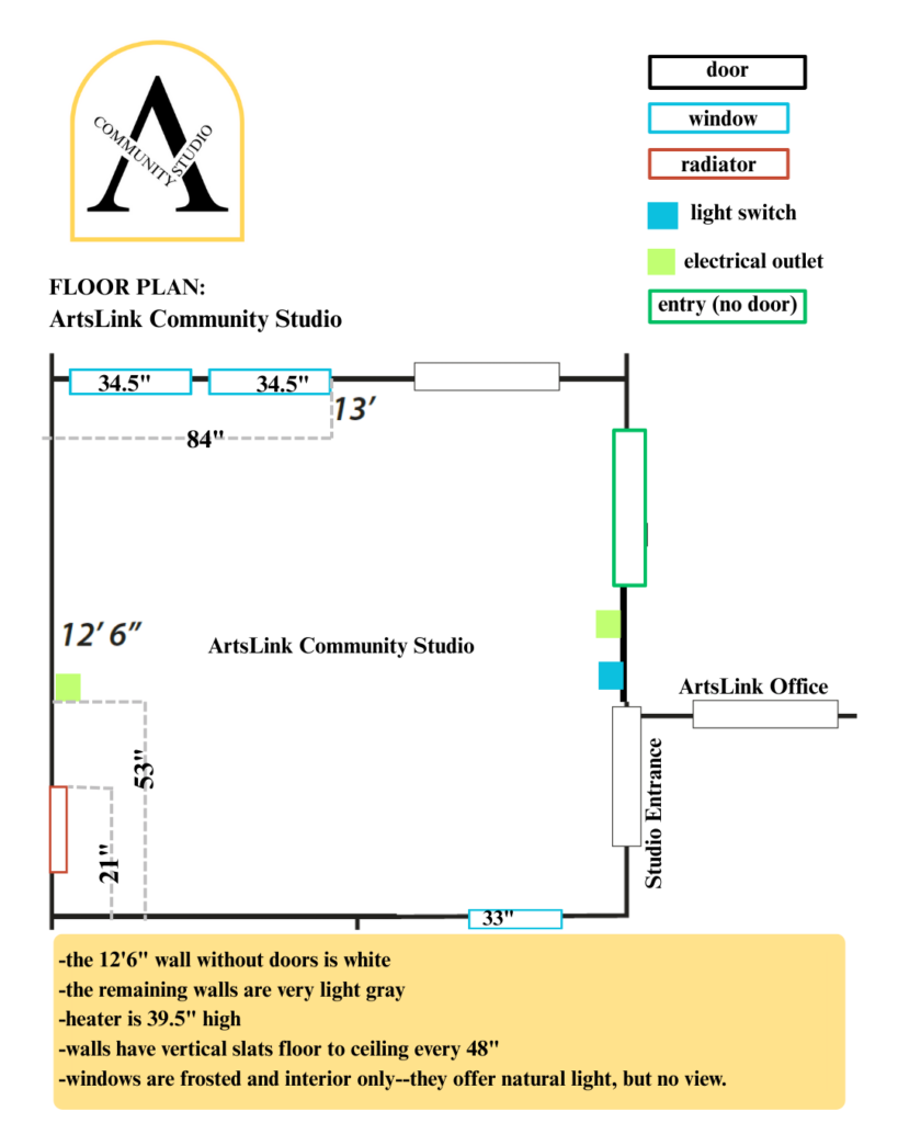 The ArtsLink Community Studio is a flex space that can be booked by members free-of-charge for use as a short-term workspace, studio, meeting, or event space.