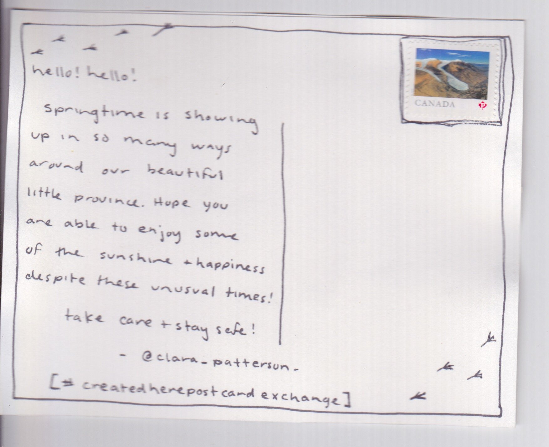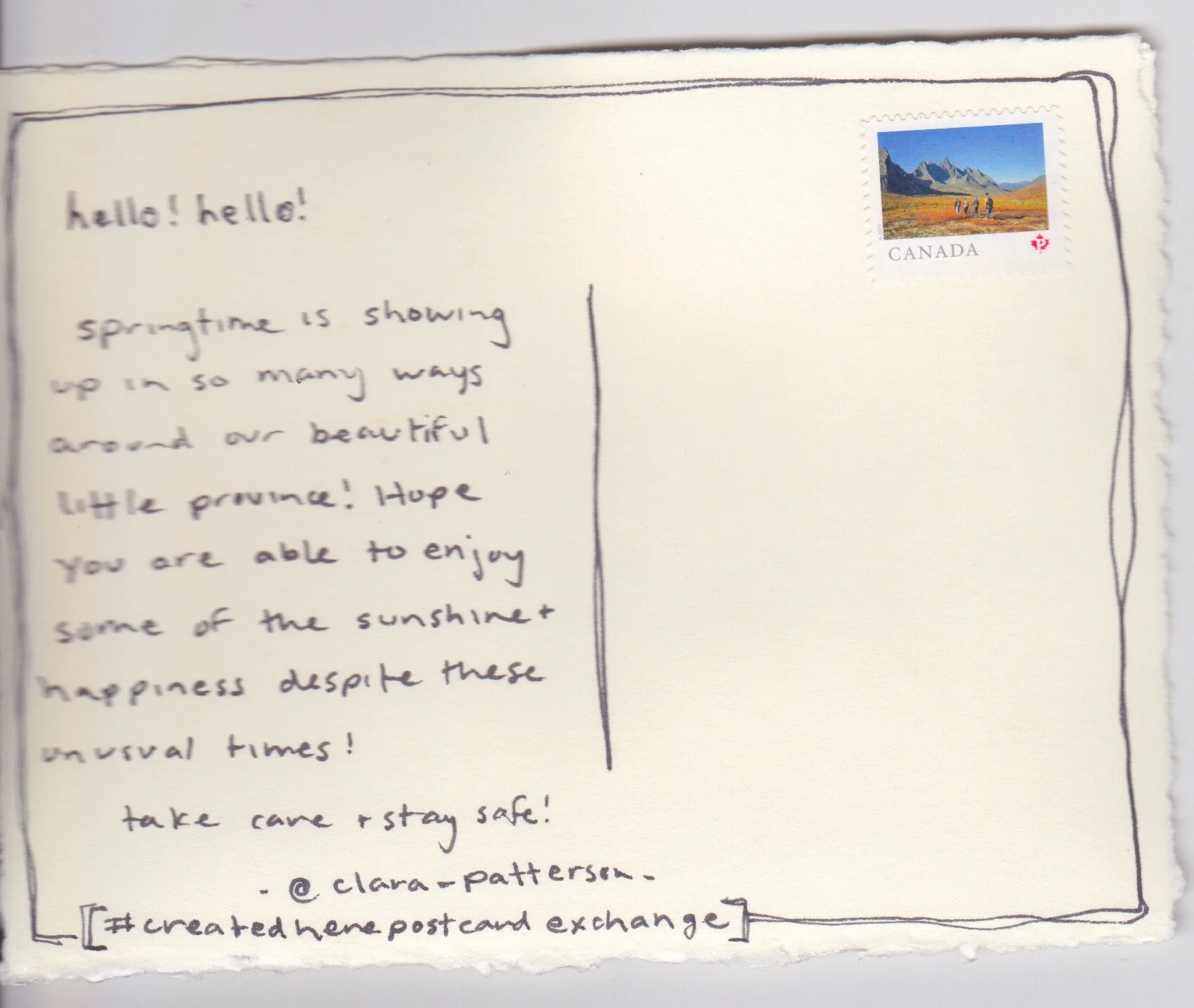 Back in April, when we were about a month into the pandemic in Canada, we put out a call for you to participate in the #CreatedHerePostcardExchange.